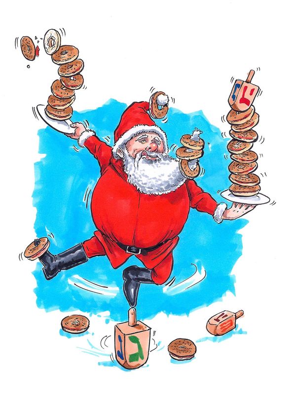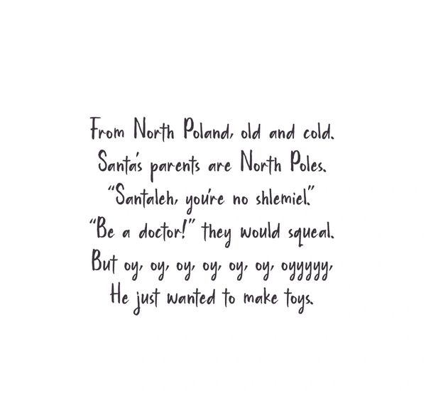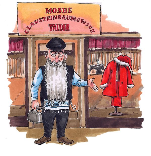 He always has his head covered. He works on Christmas Eve. And his parents are both from North Poland – which makes him a North Pole! Yes, it's all starting to make sense. Santa's a big old jolly mensch. Meet Santa Claus-stein-baum-o-wicz.